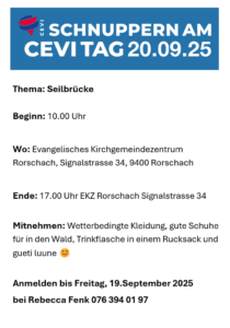 Hier in Rorschach wird die Cevi – Jungschar von der Evang. Kirchgemeinde unterstützt.